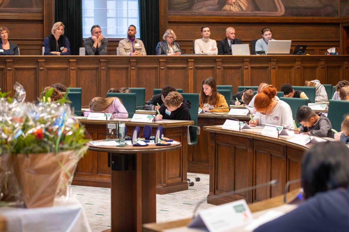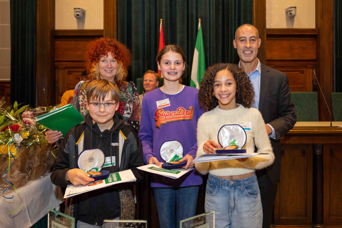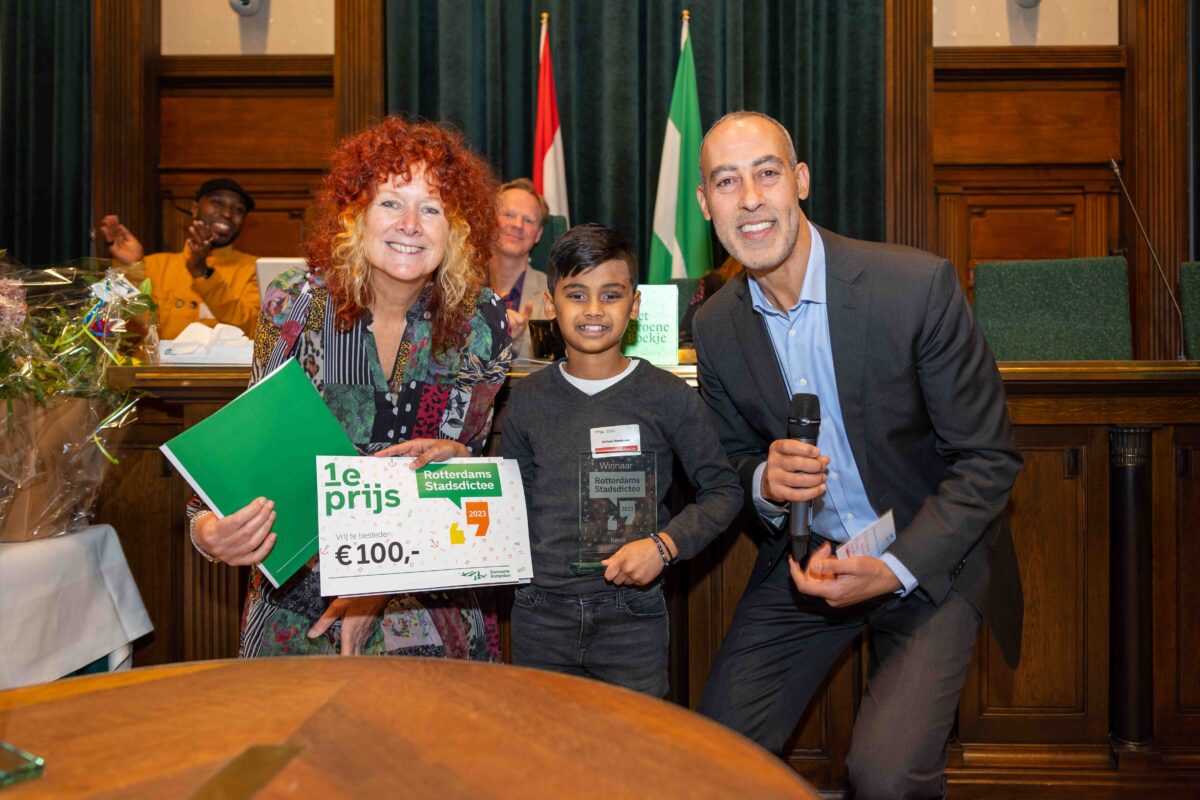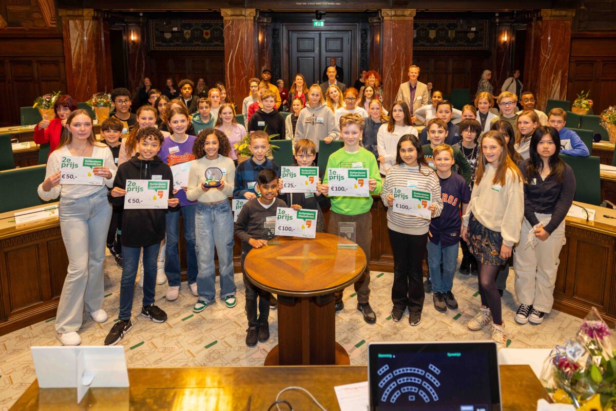 Deze week deden vier brugklassers namens het Emmauscollege mee met het Stadsdictee Rotterdam. In de raadzaal van het stadhuis namen Laura van Gelderen, Xinrui Zhou, Joëlle van Surksum en Richano Ramjiawan het op tegen leerlingen van zestien Rotterdamse scholen. Schrijfster Carrie had er een pittig dictee van gemaakt, maar daardoor lieten onze leerlingen zich niet uit het veld slaan; Richano heeft de eerste prijs gewonnen en Joëlle wist de derde prijs te bemachtigen. Van harte gefeliciteerd met dit mooie resultaat en allen bedankt voor het vertegenwoordigen van onze school, jullie hebben het alle vier heel goed gedaan!